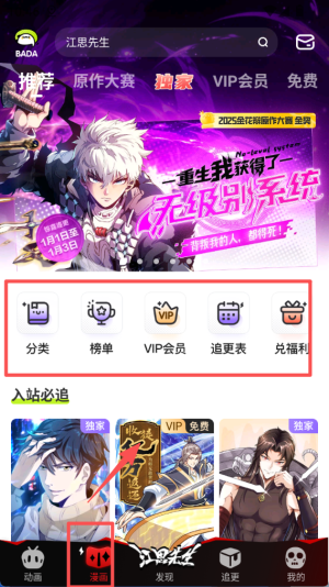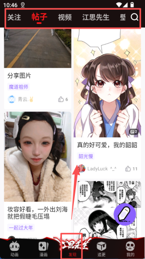 4、完成上述操作后,就能在不同板块间切换,轻松找到想看的漫画、互动内容,开启趣味阅读时光。