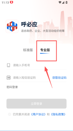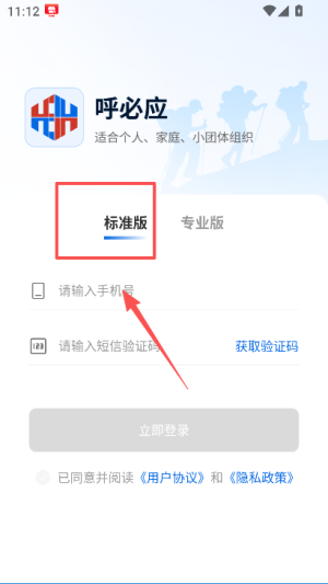 3、选择对应版本后,输入手机号并获取验证码,填写验证码后勾选协议相关选项。
