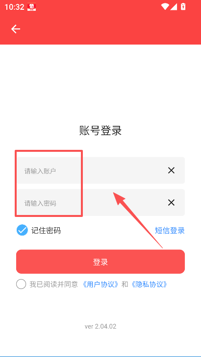 3、在账号登录页面,输入账户与密码,勾选记住密码选项,再勾选协议相关勾选框。