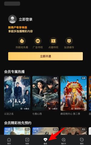 3、进入“会员”专区后,可以享受专属热播、无广告播放和提前点映等多项会员福利。