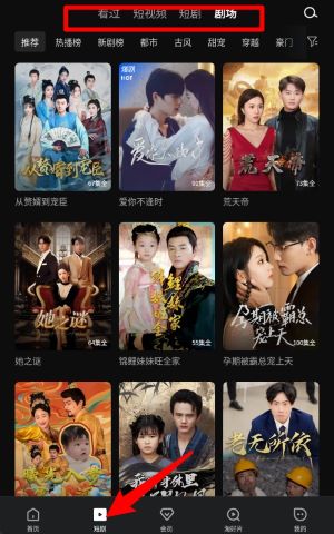 2、若想浏览短剧内容,可点击底部“短剧”入口,快速筛选爆款或分类剧集进行观看。