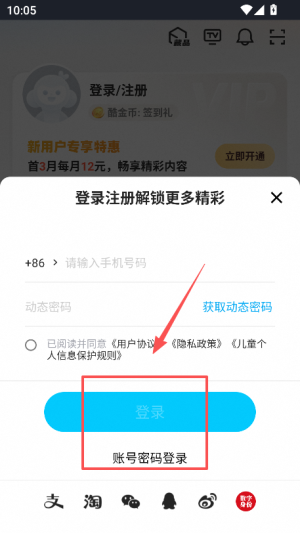 3、点击 “登录 / 注册” 按钮,选择手机号验证码或第三方账号方式,完成登录以解锁更多功能。