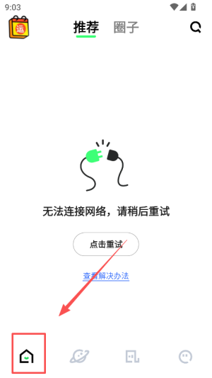 2、若遇到无法连接网络的提示,可点击重试按钮重新连接,也能查看解决办法来排除网络问题。
