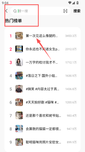 4、进入搜索页面,通过搜一搜输入关键词查找内容,也能浏览热门榜单,查看当下的高热度内容。