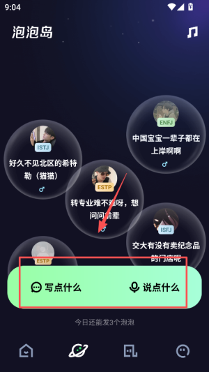 3、进入泡泡岛互动页面,点击任意位置跳过引导,再点击其他用户的泡泡内容,即可参与聊天互动。