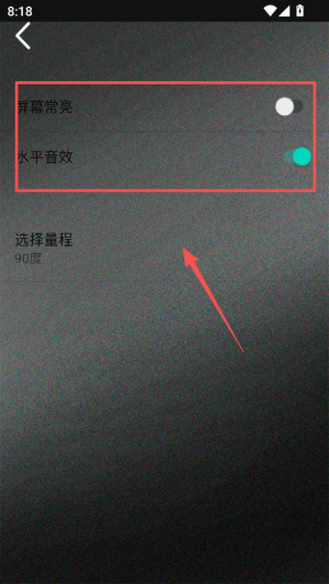 4、进入记录界面,使用顶部的互动和收藏功能,再进入设置页,可对屏幕常亮水平音效等选项进行调整。
