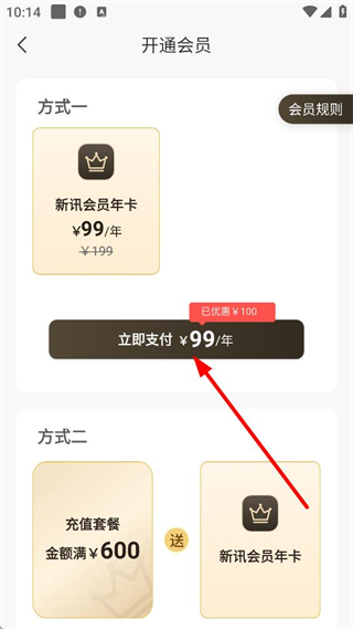 3、开通会员可选择直接购买年卡或充值满额赠送两种方式,根据消费习惯灵活选择。