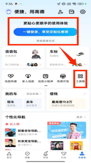3、进入 “我的” 页面,点击 “工具箱” 按钮,可展开更多功能选项,获取更丰富的工具服务。
