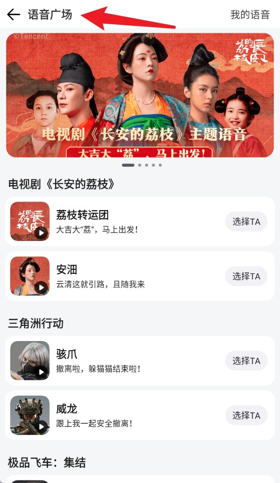2、语音广场内可选择不同角色,体验个性化语音导航和播报服务。