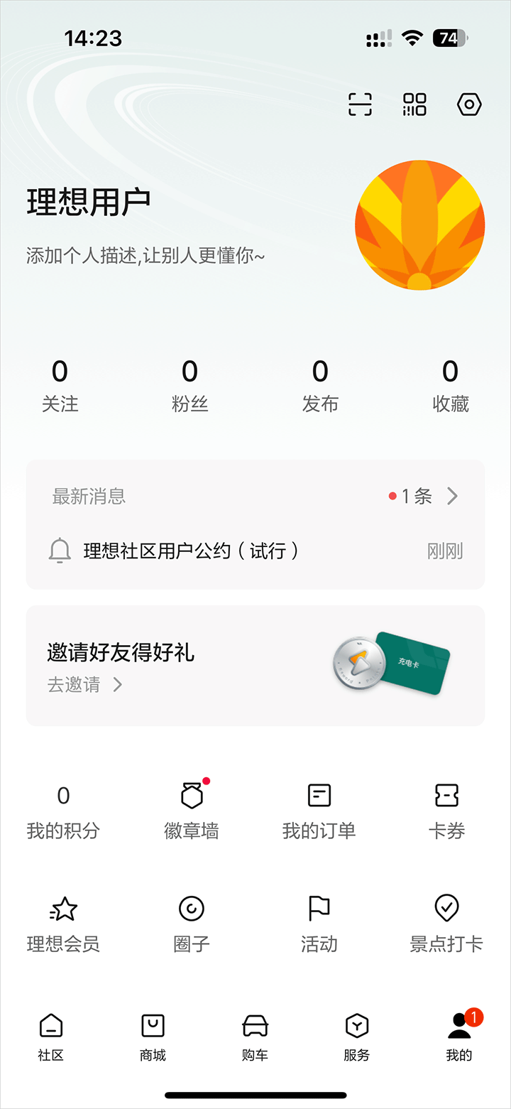 6、最后,就是个人主页了,这里包含了各种信息,比如自己的订单亦或者是理想会员等等。