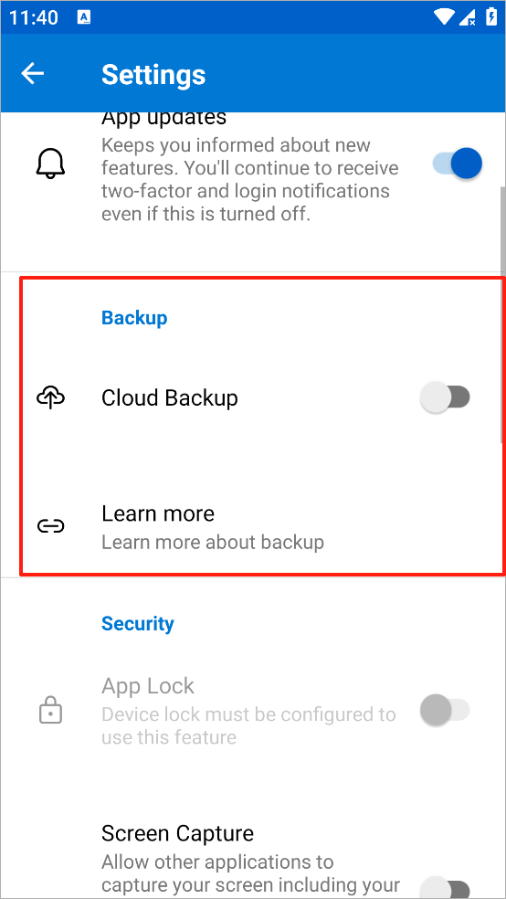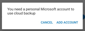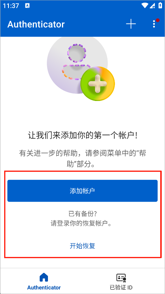 可以从云帐户恢复帐户凭据,但必须首先确保正在恢复的帐户在 Authenticator 应用中不存在。 例如,如果要恢复个人 Microsoft 帐户,则必须确保尚未在验证器应用中设置个人 Microsoft 帐户。 此检查非常重要,因此我们可以确保不会错误地覆盖或擦除现有帐户。