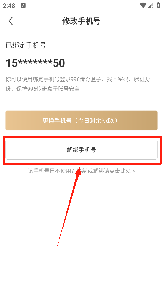 5、选择下方的解绑手机号即可,如果需要更换手机号的话可以直接点击上放更换手机号,不需要解绑后再重新绑定