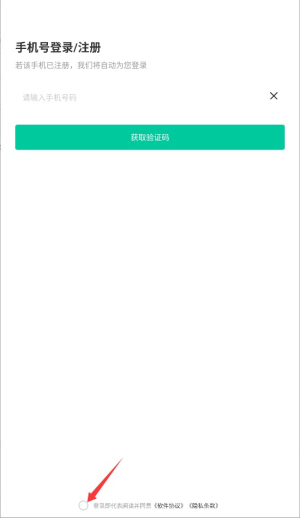 3、在登录页面勾选同意用户协议与隐私政策条款,进入身份验证步骤。
