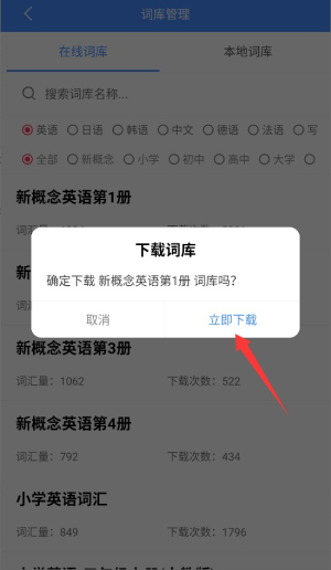 4、根据学习需求选择对应词库,点击下载按钮即可将词库添加至学习计划。