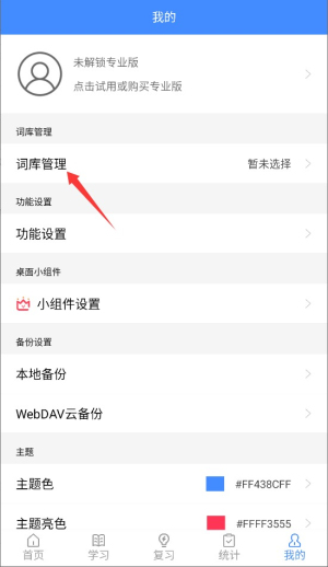 3、在个人功能列表中找到"词库管理"选项,点击进入词汇资源下载界面。