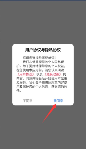 1、首次启动应用时,系统会显示用户协议和隐私政策,阅读后点击同意按钮进入主界面。