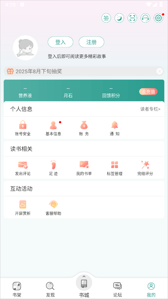 晋江文学城app是一款由北京晋江原创网络科技有限公司所推出的阅读软件,里面包含丰富的小说资源:如言情小说、都市、古代、民古、重生、青春校园等各种各样的详细分类,用户可以快速找到自己喜欢的小说进行阅读,并且app提供智能推荐功能,每天会根据用户的浏览记录及收藏喜好,推荐精选好书,让你随时随地畅享阅读的乐趣。此外,app中内置了论坛交流中心,用户可以与其他读者甚至作者一起交流讨论小说的剧情,互相分享自己的阅读心得。