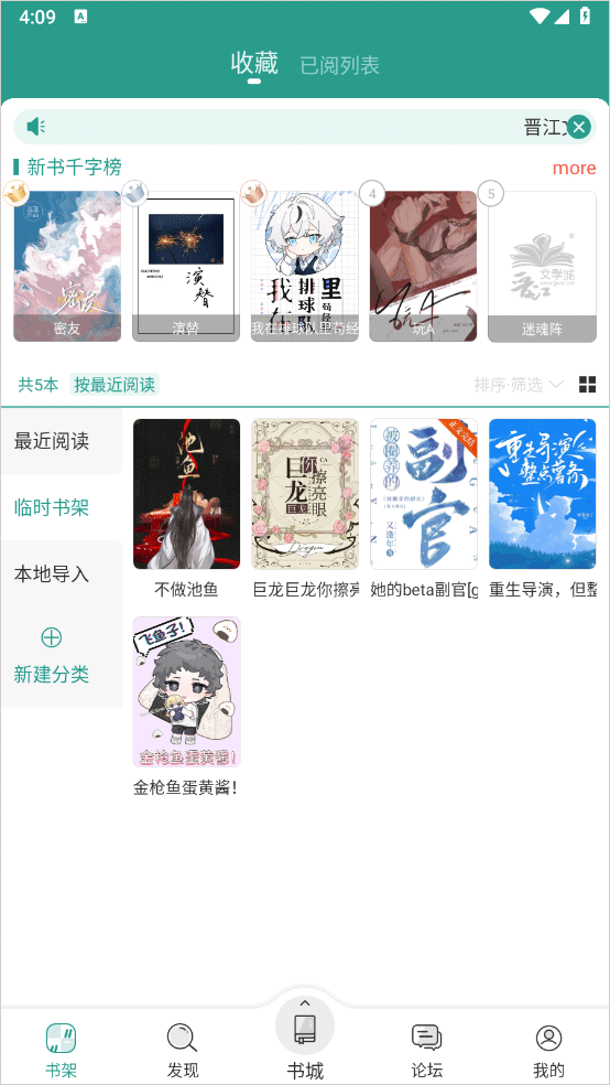 2、可以把喜欢或者没看完的小说放入书架