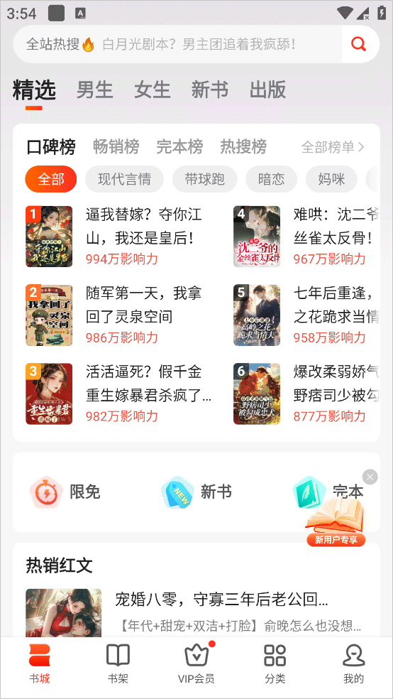 1、在本站下载打开后进入书城主页,在这里你可以发现各种精选推荐内容以及男频女频、全部榜单、完结限免等等内容。