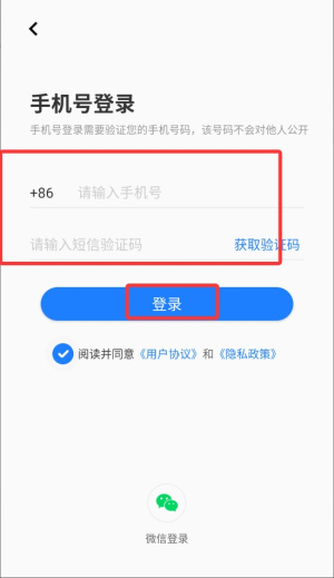 4、输入注册手机号码并获取短信验证码,填写后即可完成登录操作。