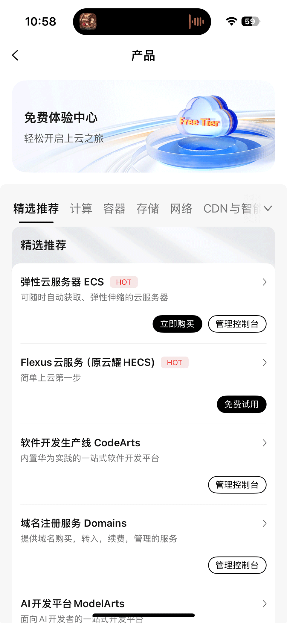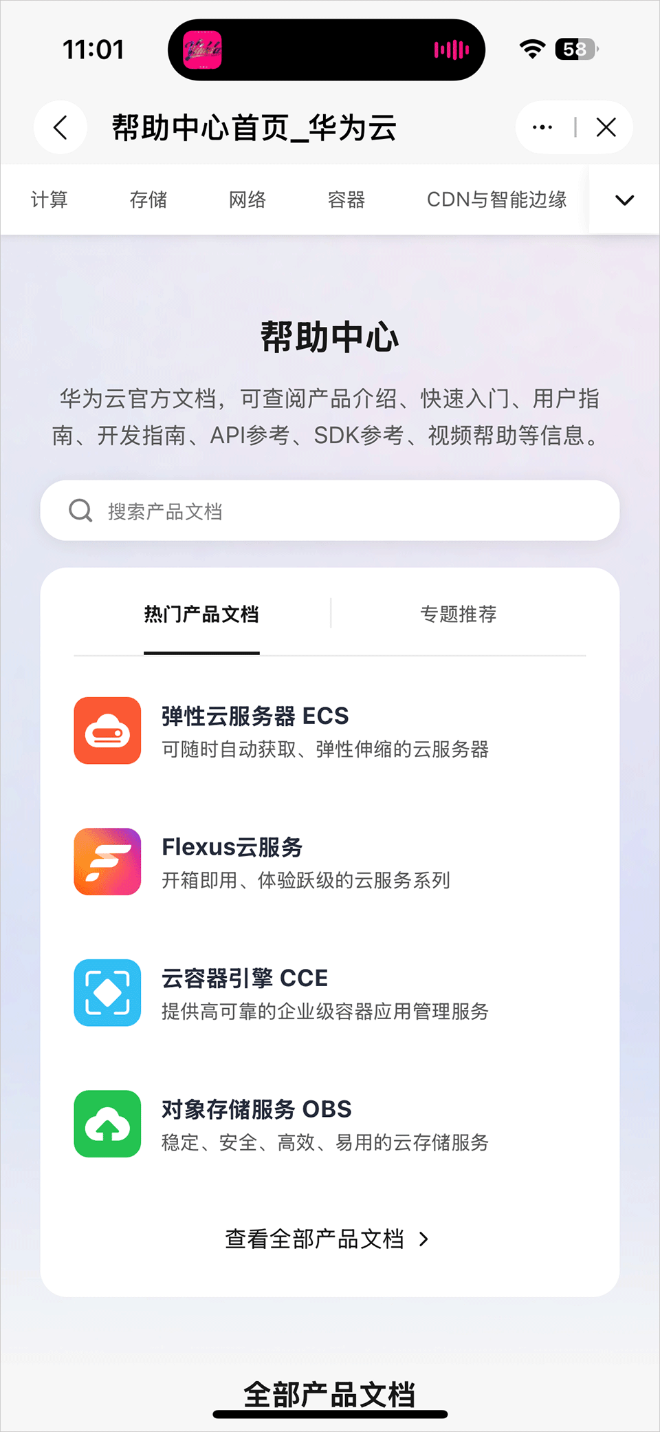 通过顶部导航的产品菜单查看并选择感兴趣的华为云服务,每个产品专题都有我们的产品和服务的详细介绍。