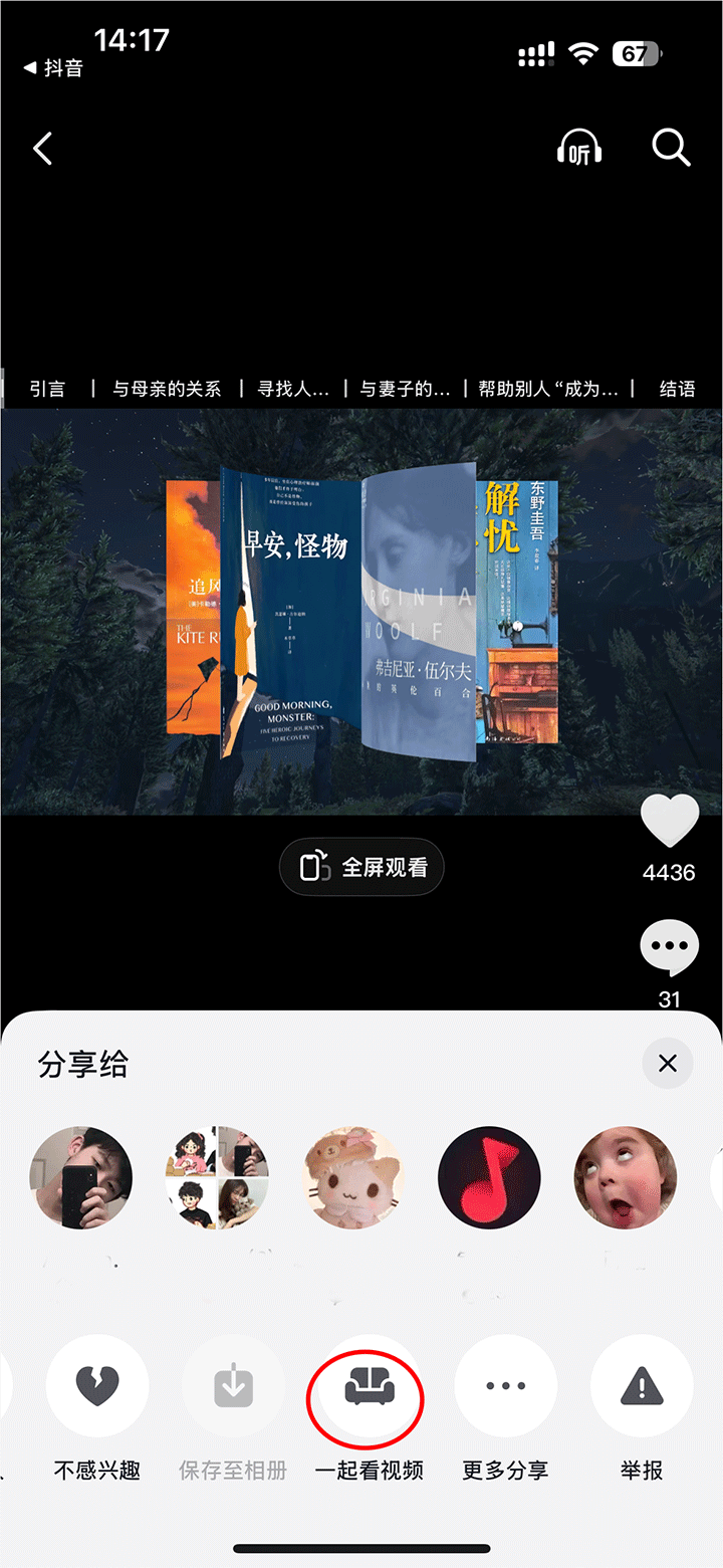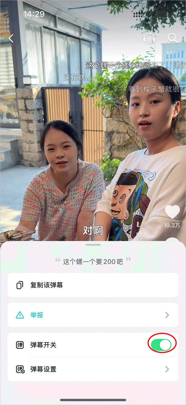 2、进入短视频播放界面随机点击屏幕上的一个弹幕会弹出一个小窗口点击三点图标