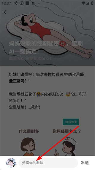 3、在文章页面点击分享观点按钮,输入个人见解后发送即可参与知识讨论交流。