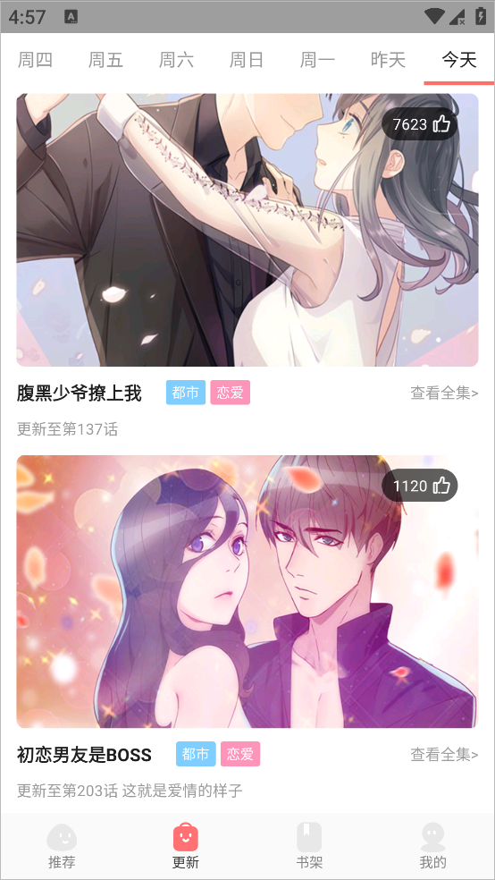2、更新里面会有每天更新的漫画,可以直接点击观看