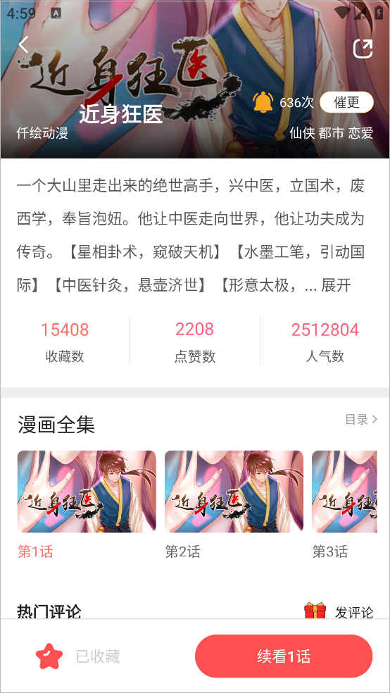 3、点击进入想看的漫画可以查看漫画的简介,还可以点击右下角的收藏