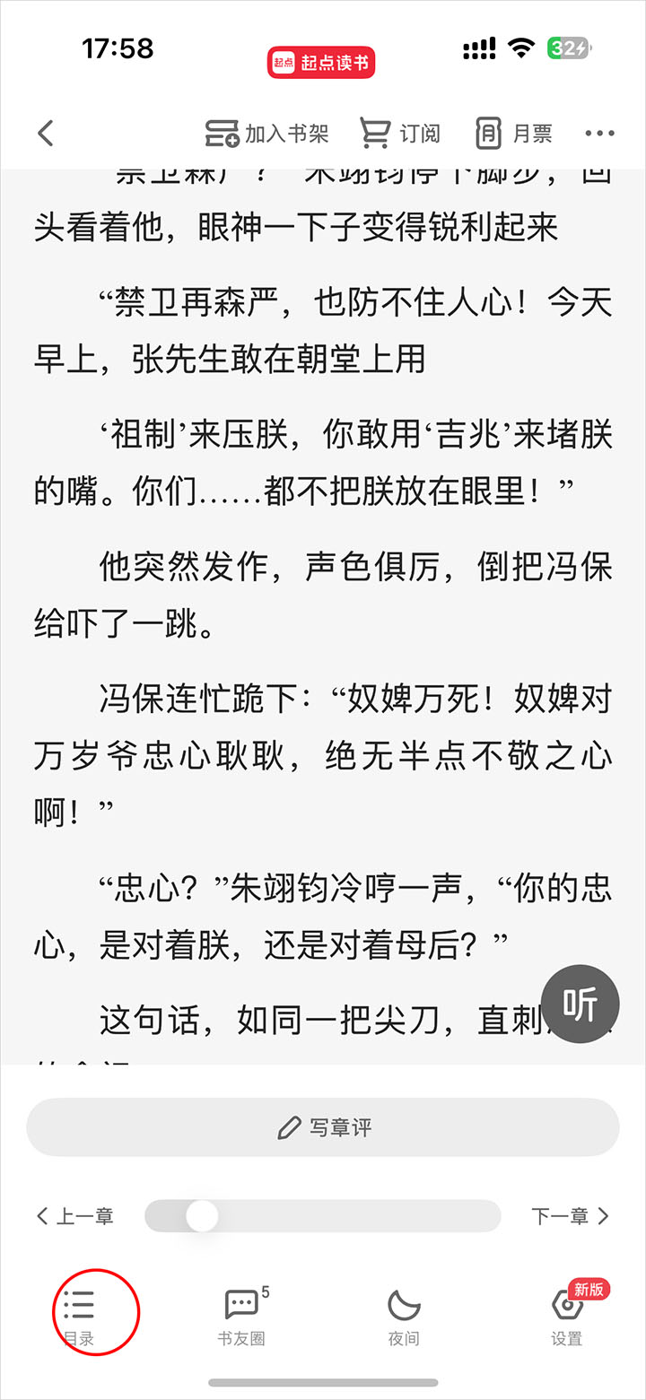 起点读书app怎么调出目录