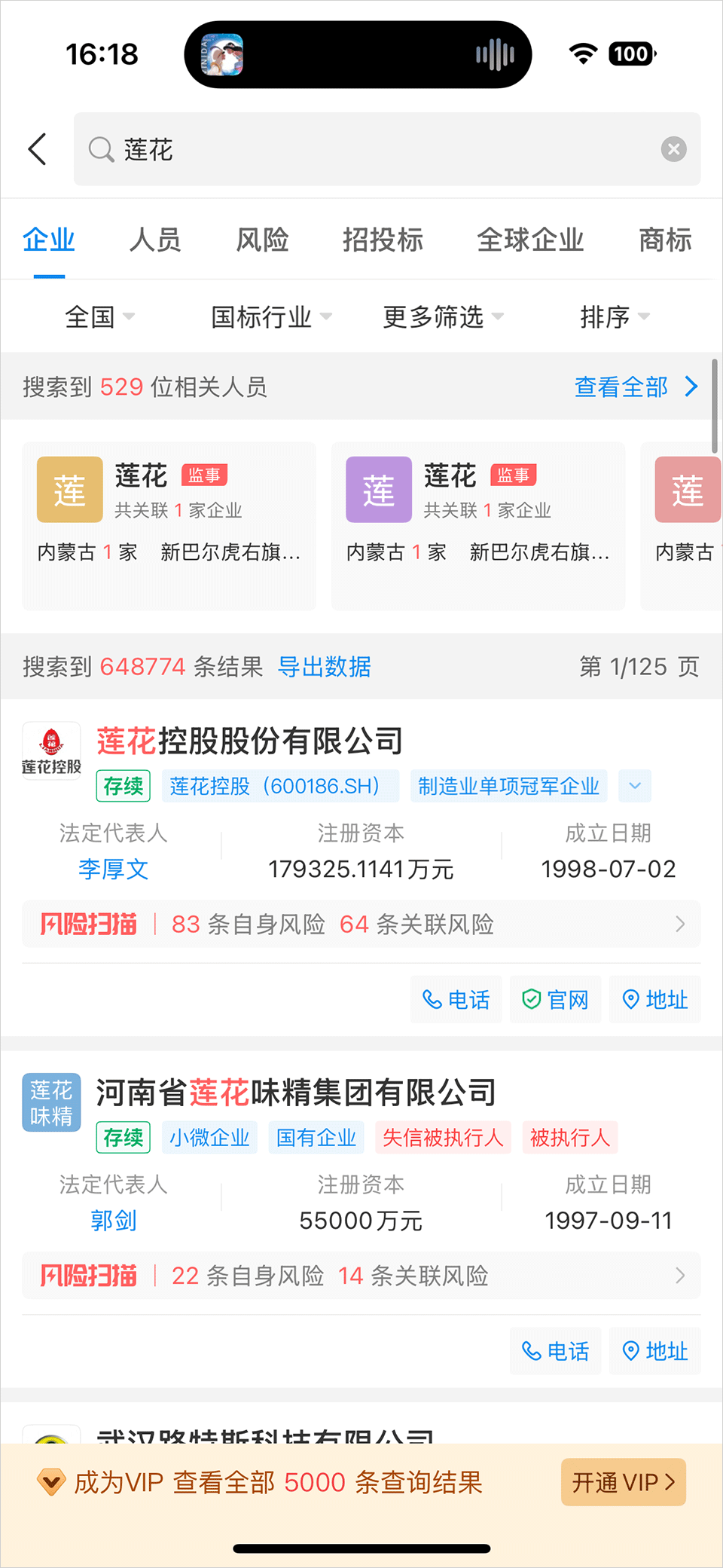7、批量查询:批量上传企业名录,一键导出工商信息、知识产权、风险信息等多维度数据,提升效率。