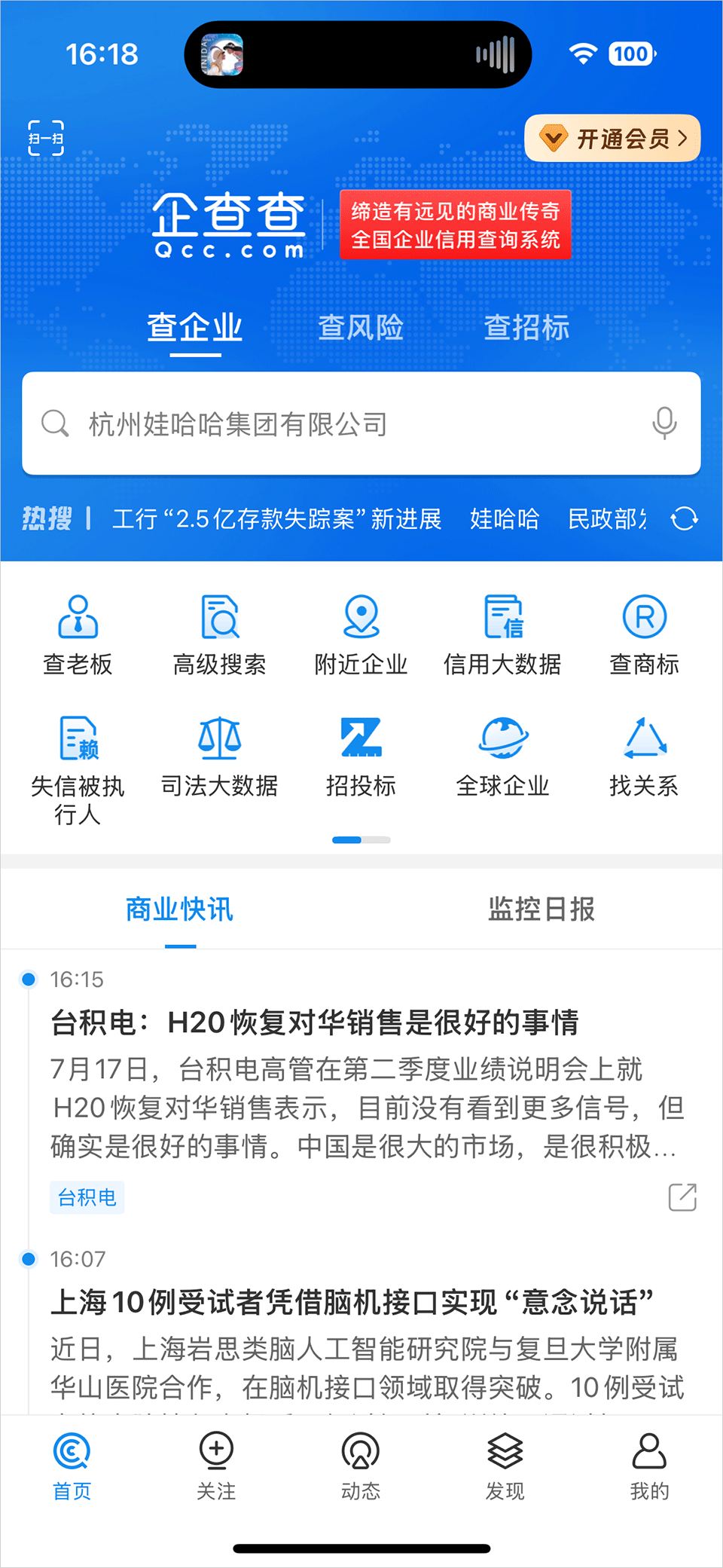 3、风险监控:监控企业/人员的工商、司法、监管、经营风险和舆情动态等。