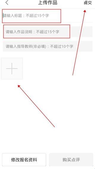 8、输入作品名字以及相关信息,然后点击+号将作品图片附加上,最后点击提交即可