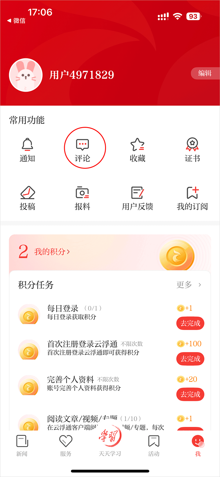 2、进入我页面点击评论