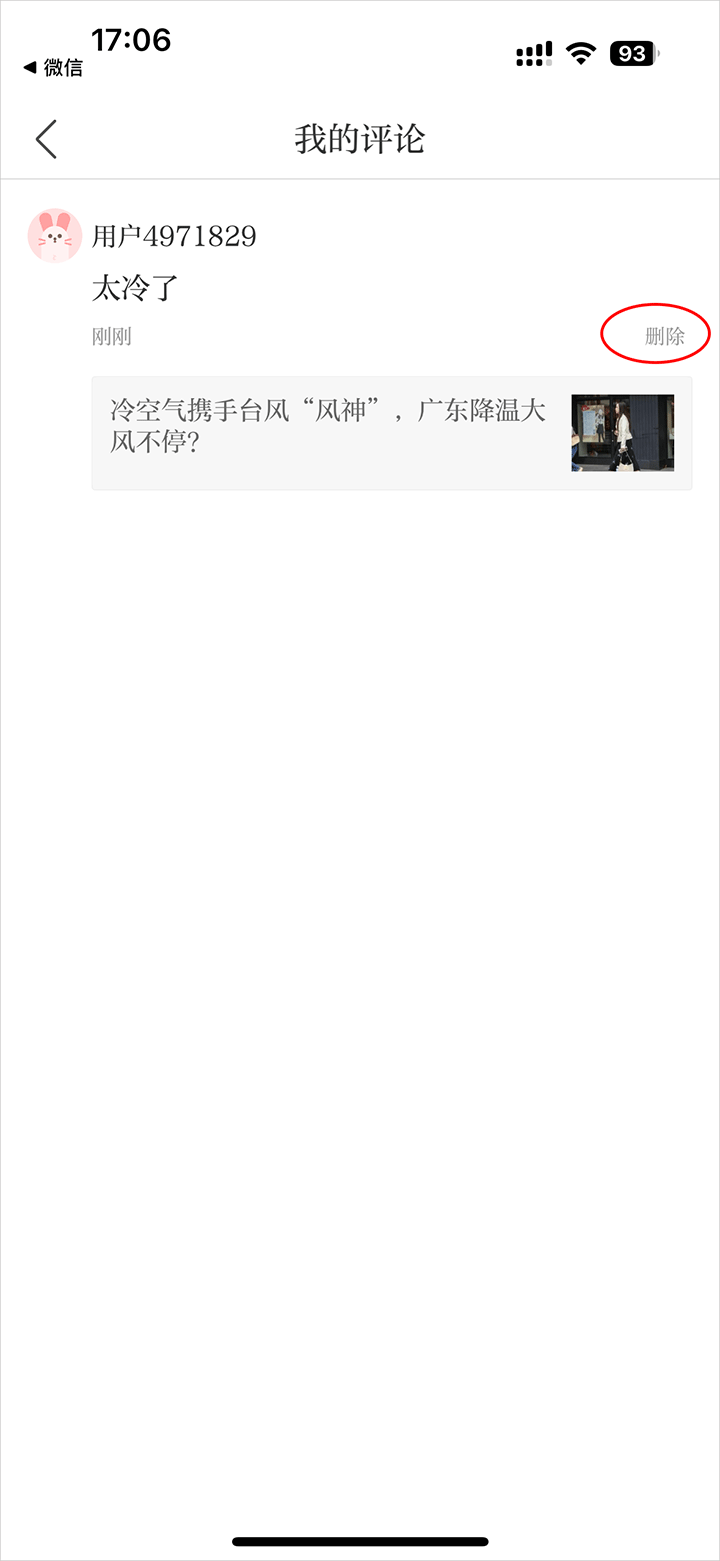 3、进入我的评论页面选择我要删除的评论,点击删除