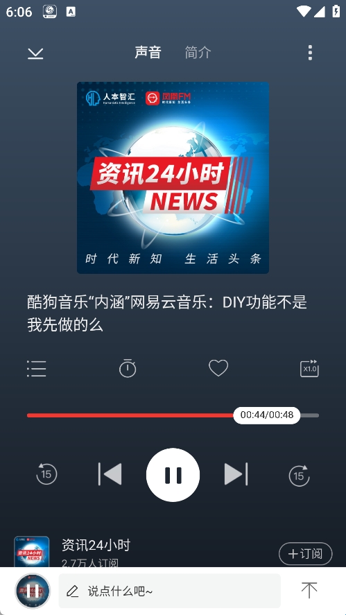 3、图文介绍让资讯能听又能看,炫酷的收听体验。