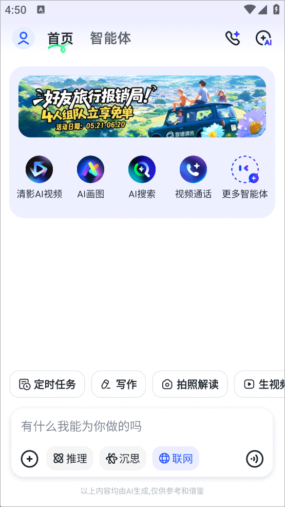 智谱清言app是一款能够智能对话的AI助手软件。能够回答各类问题、提供创意写作和代码生成等多样化功能。在当今的信息化时代,人工智能已经渗透到我们生活的方方面面。这款AI助手旨在为用户在工作、学习和日常生活中提供智能化服务,提升效率和生活品质,无论是在学术研究中助力论文写作,还是在职场上优化文档编辑,亦或在生活中成为创意构思的源泉,智谱清言都能以其全面的功能和高效的服务,成为用户不可或缺的得力伙伴。