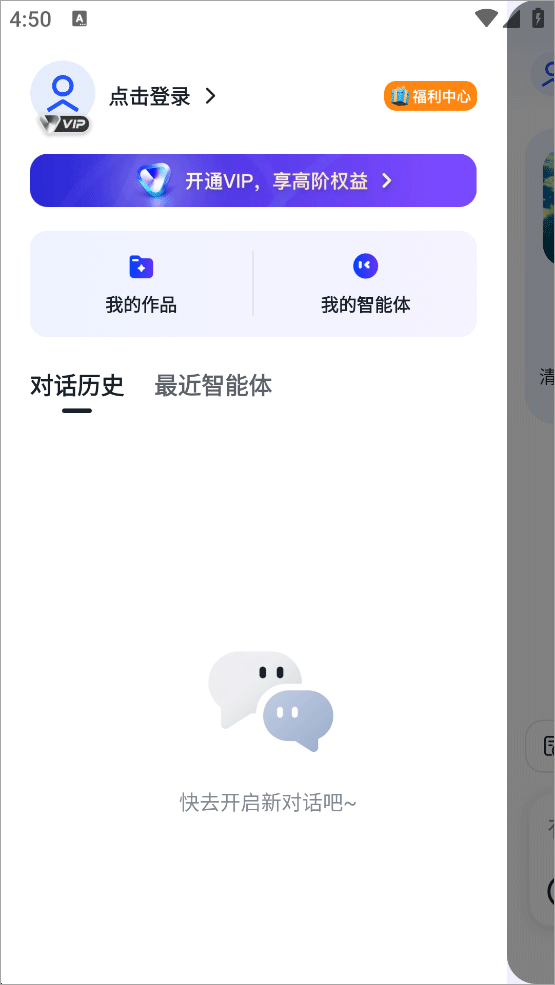 3、点击左上角的头像,可以进入用户信息的界面,登入后会记录下来与ai的所有的聊天记录