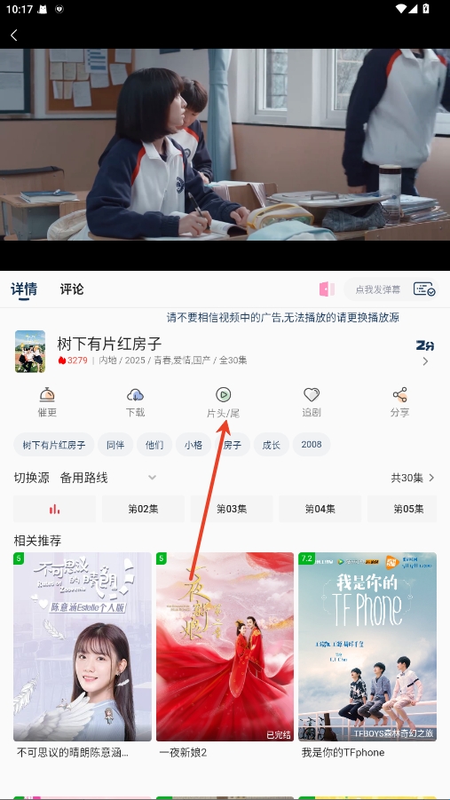 1、在影视播放界面,点击片头/尾。