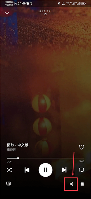 3、然后在播放界面中点击右下角分享按钮;