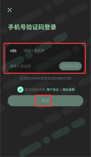 4、输入注册手机号码并获取短信验证码,填写后即可完成登录操作。
