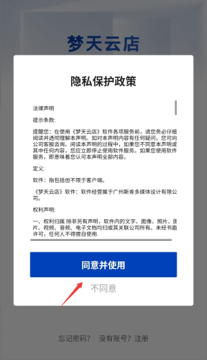 1、首次启动应用时,系统会显示用户协议和隐私政策,阅读后点击同意按钮进入主界面。