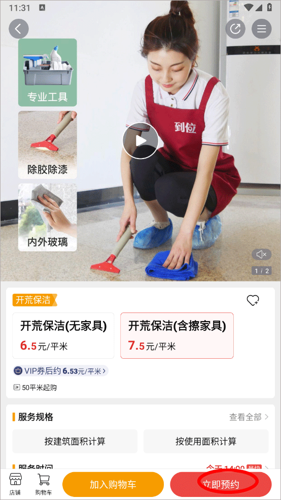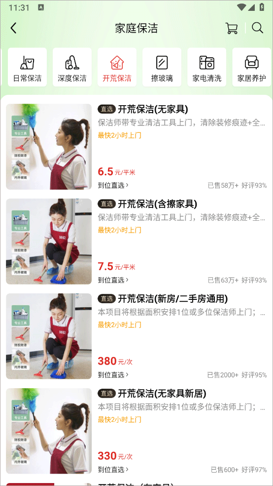 2、小编以家庭保洁为例,进入选择保洁的种类