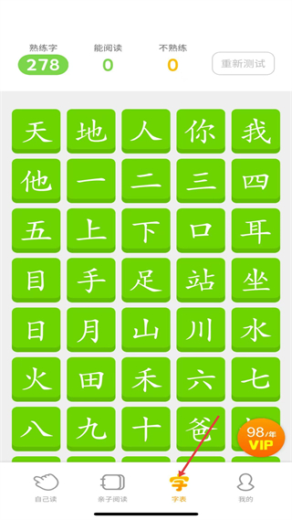 3、字表模块系统整理已学汉字,按掌握程度分类展示便于巩固识字基础。