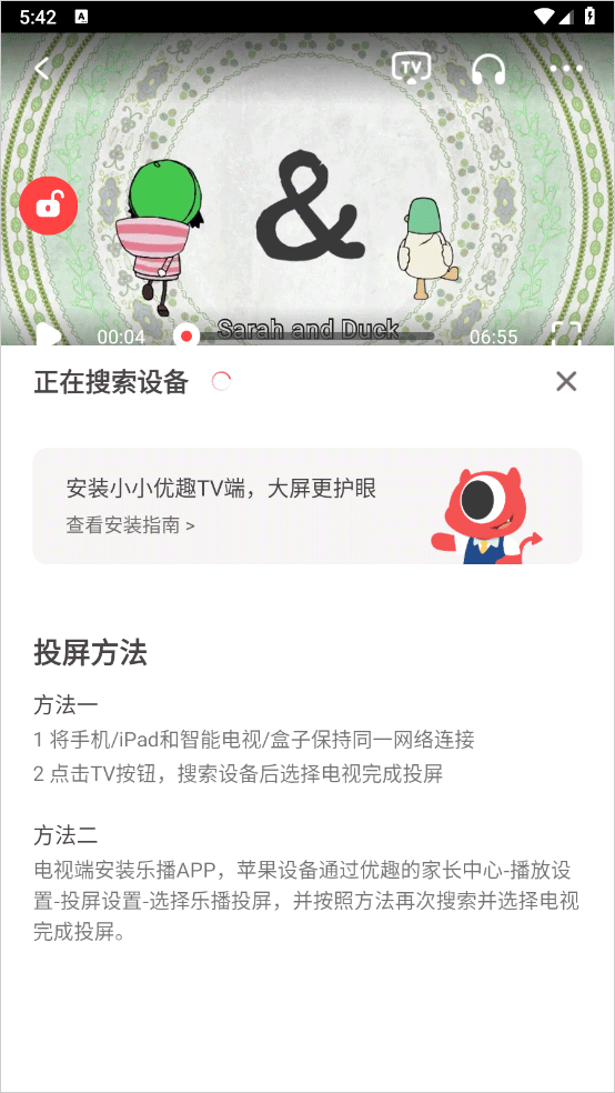 3、搜索选择你要投屏的电视连接,注意需要手机和电视连接同一wifi哦