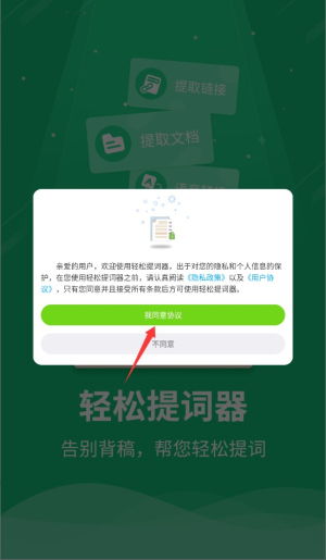 1、首次启动应用时,系统会显示用户协议和隐私政策,阅读后点击同意按钮进入主界面。