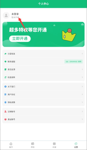 2、在主页面选择"设置"功能入口,进入个人管理与服务界面。