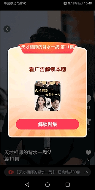 4、通过看广告可免费解锁全部剧集进行免费观看