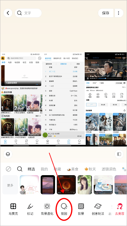 在界面左侧的工具栏中,找到并点击“抠图”按钮。这是进行背景更换的关键步骤。点击后,系统会提示选择抠图模式,一般选择“智能抠图”。