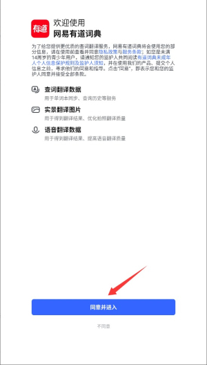 1、首次启动应用时,系统会显示用户协议和隐私政策,阅读后点击同意按钮进入主界面。